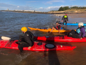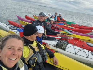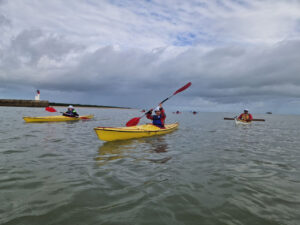 Nous avons participé à 2,5 jours de stage sur les 4 prévus (23 au 26/10/2025). Tout a été pris en charge pour la somme de 120 € pour les 4 jours: hébergement en bungalows de 6 personnes dans un camping (Les Cercelles à Saint Pierre), les repas pris en commun dans une grande salle réservée du camping, les cours de kayaks de mer théoriques et pratiques. Le nombre de participants a été variable de 9 à 16 participants, en famille ou en individuel…